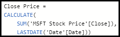 With our knowledge of DAX we may now attempt modify our Close Price measure with the following: