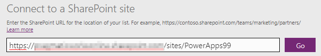 Now you need to connect to the specific SharePoint site where your list has been stored. My list has been stored in my PowerApps99 site.