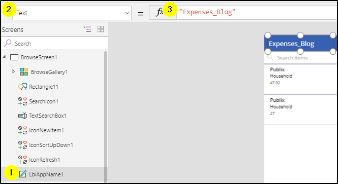 In this first image we can see that the name of the title on the screen has an underscore instead of a space. Secondly, we see that the default value of the expense amount is not consistent. We are going to quickly update each of these items.