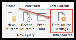 This will launch the Power Query Editor. Next, click “Data source settings” found on the Home ribbon.